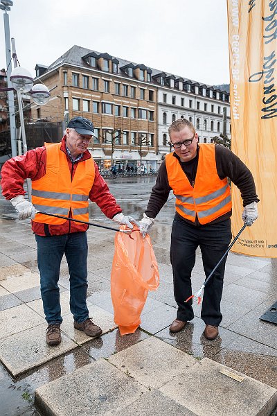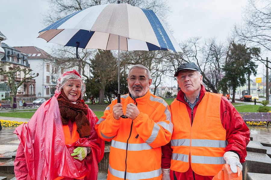 Dem Regen zum Trotz haben Bürgermeister Wolfgang Erichson, Rolf Friedel, Leiter des Amtes für Abfallwirtschaft und Stadtreinigung, Michael Kraft, Leiter des Regiebetriebs Reinigung, sowie Stadträtinnen und Stadträte den Frühjahrsputz am Samstag, 13. April 2013, um 10 Uhr auf dem Bismarckplatz gestartet.