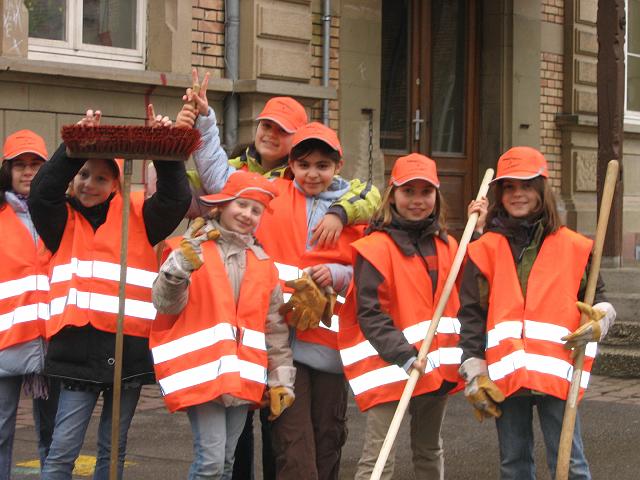 | Ein kleiner Ausschnitt der großen Putzaktion der Landhausschule in der Weststadt. Die Landhausschule beteiligt sich schon einige Jahre sehr rege an der Frühjahrsputzaktion der Stadt Heidelberg. (Foto: Landhausschule) |