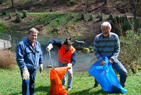 | Der Freundeskreis Wolfsbrunnen war gleich am ersten Tag, dem 12.4. April mit dabei. Voller Elan haben sie Innerhalb einer Stunde den Bereich um das Vereinsgelände gereinigt. Danach gab's Kaffee und Kuchen, Brunnengespräche und Naturgenuss. (Foto: Freundeskreis Wolfsbrunnen) |
