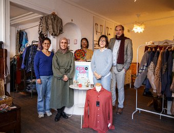 Freuen sich über die neuen Verkaufsmöglichkeiten am Heumarkt. Shiva Hamid (Stabsstelle Kultur- und Kreativwirtschaft, von links), Silja Aebersold-Keles (SAIS…