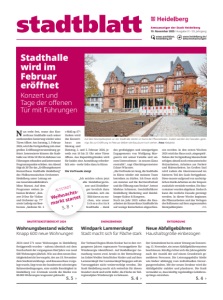 www.stadtblatt. heidelberg.de www.heidelberg.de/ bekanntmachungen Nun steht fest, wann das Konzerthaus Stadthalle nach seiner umfassenden Sanierung wieder seine Türen öffnet: Am Sonntag, 1. Februar 2026, wird die Fertigstellungmit einer großen Eröffnungsveranstaltung gefeiert. Interessierte können die Stadthalle von 10 bis 18 Uhr imRahmen von Führungen erkunden und interessante Programmpunkte erleben. AmAbend folgt ab 20 Uhr das „Eröffnungskonzert Konzerthaus Stadthalle Heidelberg“ des Philharmonischen Orchesters Heidelberg unter Leitung seines Generalmusikdirektors Mino Marani. Auf dem Programm stehen Johannes Brahms’ „Konzert D-Dur für Violine und Orchester op. 77“ sowie Ludwig van Beethovens „Sinfonie Nr. 5 c-Moll op. 67“. Zudem wird das Konzerthaus am Montag und Dienstag, 2. und 3. Februar 2026, jeweils von 16 bis 21 Uhr seine Türen öffnen. Aus Kapazitätsgründen wird für beides eine Anmeldung erforderlich sein – mehr Infos dazu in Kürze. Die Vorfreude steigt „Ich möchte schon jetzt alle Heidelbergerinnen und Heidelberger herzlich dazu einladen, sich ein Bild davon zu machen, wie unser Schmucks tück Stadthalle – dank des großzügigen und einzigartigen Engagements von Wolfgang Mar- guerre mit seiner Familie und seinem Unternehmen – in neuem Glanz erstrahlt“, sagt Oberbürgermeister Eckart Würzner. „Die Vorfreude ist riesig, die Stadthalle in Kürze wieder mit meinem Team betreiben zu dürfen. Ich freue mich am meisten auf die Barrierefreiheit und die Öffnung zumNeckar“, betont Mathias Schiemer, Geschäftsführer Heidelberg Marketing und Heidelberger Kultur & Kongress. Noch im Jahr 2025 sollen die Bauarbeiten imKonzerthaus Stadthalle bis auf wenige Restarbeiten abgeschlossen werden. In den ersten Wochen 2026 wird das Haus noch ‚eingespielt‘. Neben der Fertigstellung Haustechnik erfolgen aktuell noch restauratorische Holzarbeiten, Arbeiten am Parkett und Malerarbeiten. Im Großen Saal wird zudem die Glastrennwand im hinteren Teil des Saals fertiggebaut. Diese musste aufgrund von nachträglichen Statik-Arbeiten an der Empore zusätzlich verstärkt werden. Die Baucontainer wurden abgebaut. Dadurch kann die restliche Fassade gereinigt werden. In dieser Woche beginnen die Pflanzarbeiten und das Verlegen des Rollrasens auf dem angrenzenden Montpellierplatz. chb ALTSTADT Weihnachtsmarkt startet S. 8 › Auf dem Montpellierplatz an der Stadthalle starten in Kürze die Pflanzarbeiten. Zudem werden die Fassaden gereinigt. Bis zur Eröffnung im Februar bleiben die Bauzäune noch stehen. (Foto Niebylski) Amtsanzeiger der Stadt Heidelberg 19. November 2025 / Ausgabe 31 / 33. Jahrgang ENTSORGUNG Neue Abfallgebühren Haushaltsgröße einbezogen Der Gemeinderat hat in seiner Sitzung amDonnerstag, 13. November, ein neues Abfallgebührensystem beschlossen. Künftig richtet sich die Jahresgebühr nach der Anzahl der auf einem Grundstück gemeldeten Personen. Die Leistungsgebühr bleibt wie bisher abhängig vom individuellen Entsorgungsverhalten. Mit der neuen Struktur wird die Abfallgebühr stabiler und planbarer. Die Stadt vermeidet so, dass künftig regelmäßige Gebührensprünge entstehen. S. 4 › ENERGIEWENDE Windpark Lammerskopf Stadt macht sich für Fläche stark Der Verband Region Rhein-Neckar hat in den vergangenen Jahren sogenannte Vorranggebiete für Windenergie identifiziert. Auf Heidelberger Gemarkung waren zwei Areale in der Betrachtung: im Gebiet Weißer Stein/Hoher Nistler und auf dem Lammerskopf. Der Lammerskopf hingegen soll als Vorranggebiet nicht weiterverfolgt werden. Die Stadt Heidelberg macht sich weiterhin für diesen Standort stark und wirbt dafür, die Fläche im Teilregionalplan Windenergie zu belassen. S. 4 › BAUTÄTIGKEITSBERICHT 2024 Wohnungsbestand wächst Knapp 600 neue Wohnungen 2024 sind 571 neue Wohnungen in Heidelberg fertiggestellt worden – nahezu identisch mit dem Durchschnitt der vergangenen fünf Jahre von rund 600 Wohnungen jährlich. Wie aus dem neuen Bautätigkeitsbericht hervorgeht, der am 18. November dem Stadtentwicklungs- und Bauausschuss vorgelegt wurde, liegt trotz der bundesweit schwierigen Rahmenbedingungen, eine stabile Bautätigkeit in Heidelberg vor. Erstmals wurde die Marke von 80.000 Wohnungen insgesamt geknackt. S. 5 › Stadthalle wird im Februar eröffnet Konzert und Tage der offenen Tür mit Führungen